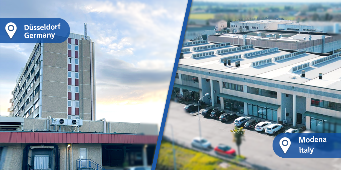 Our headquarters and warehouse are located in Düsseldorf, Germany, enabling efficient logistics within Europe. Technical testing and service support are carried out in cooperation with our facility in Modena, Italy, depending on product type and requirements.