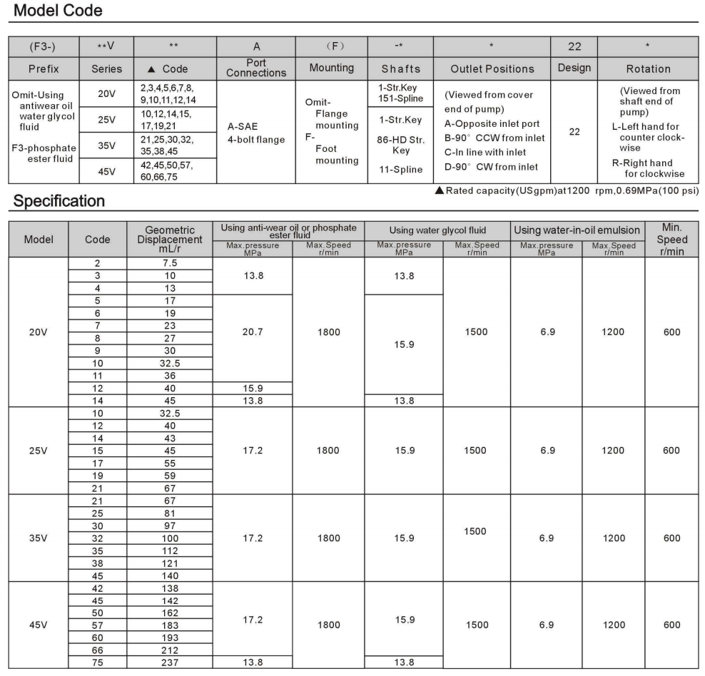 Geräuscharme Flügelzellenpumpe type V (7,5 ~ 237 mL / r)